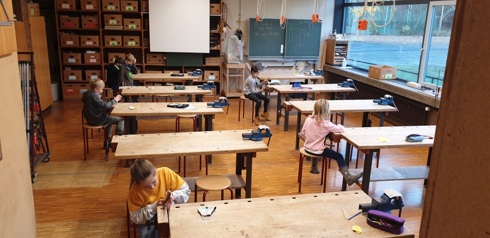 Im ehemaligen Werkraum der Hauptschule erhalten die Schüler einen grundschulbasierten Technikunterricht, in dem sie z.B. einen Bohrmaschinenführerschein erwerben und weitere praktische Erfahrungen mit Werkzeugen und Materialien sammeln. Dieser Unterricht findet ab Klasse 3 einmal die Woche in halber Klassenstärke statt.